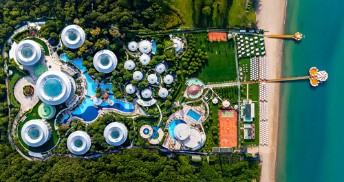Calista Luxury Resort расположен в живописном районе Белек (Анталья) — между бирюзовыми водами Средиземного моря и ароматными сосновыми лесами. Отель находится прямо на побережье, занимает просторную территорию в 120 000 м² и сочетает современную архитектуру с природным окружением. Это первый отель в Турции, получивший награду «Зеленая звезда» за экологичный подход, так что отдых здесь еще и про заботу об окружающей среде.